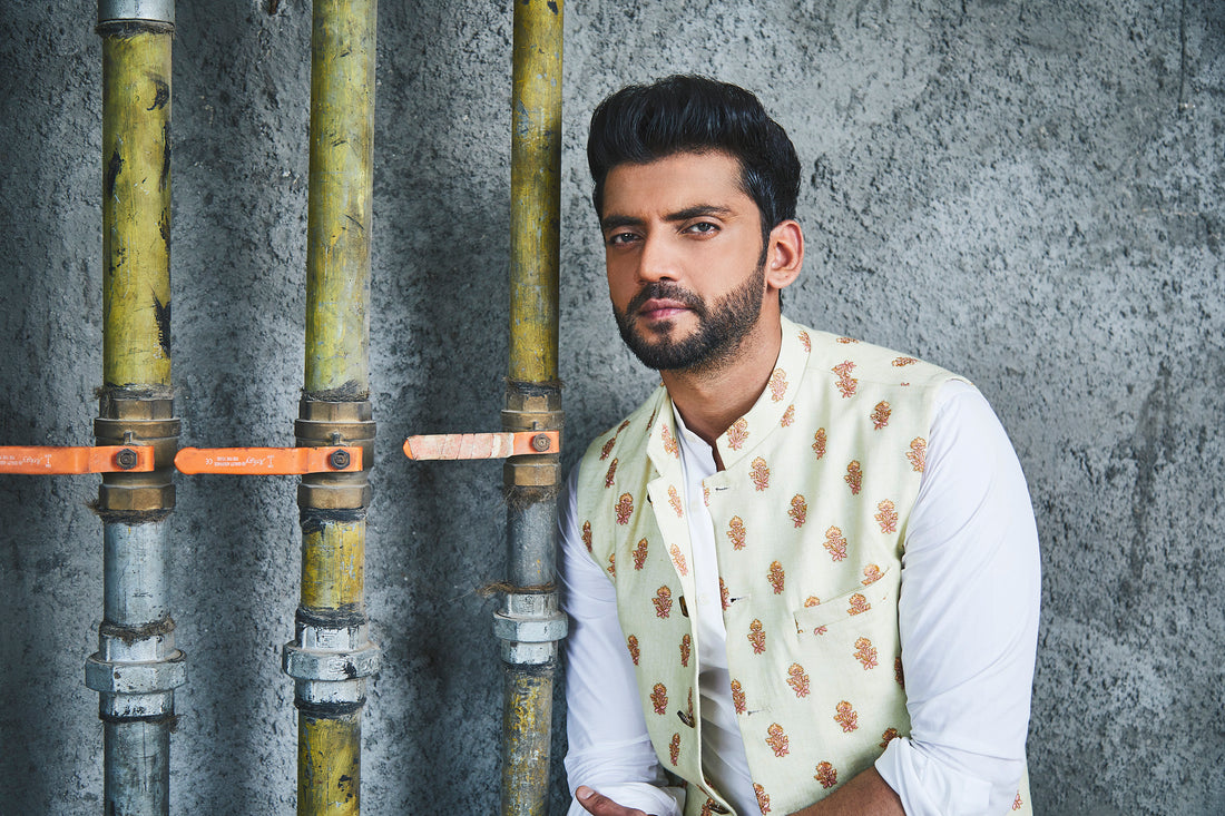 Floral print bandhgala constructed with a rich linen satin fabric. The bandhgala features laser cut mother...