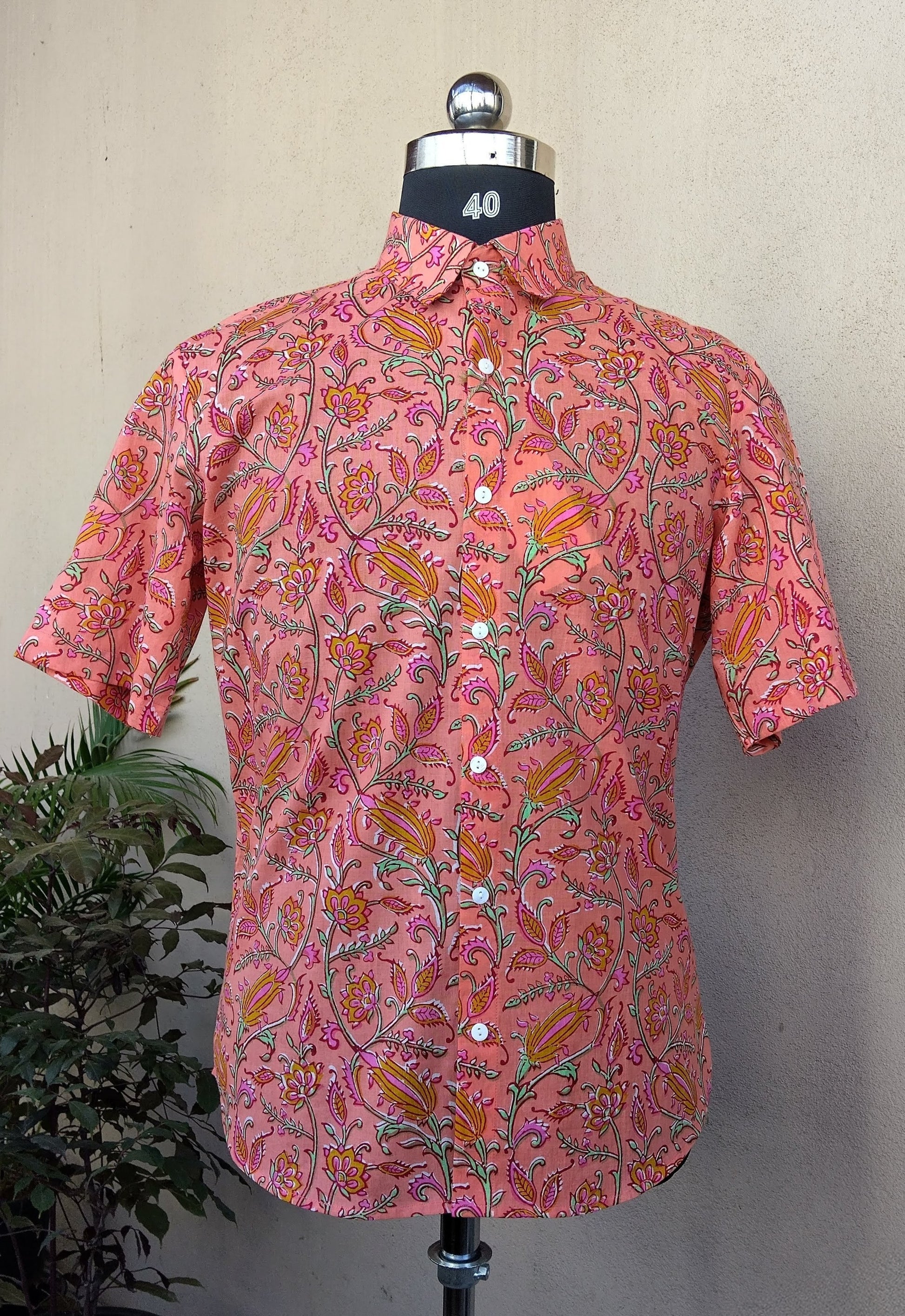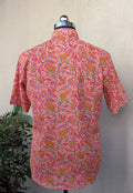 Coral hues of the evening skies with elegant florals printed on cotton fabric to create the perfect half-sleeve shirt. Designed with a classic collar, button front, and just the right amount of ease, it's your go-to for everyday dressing that feels effortless.